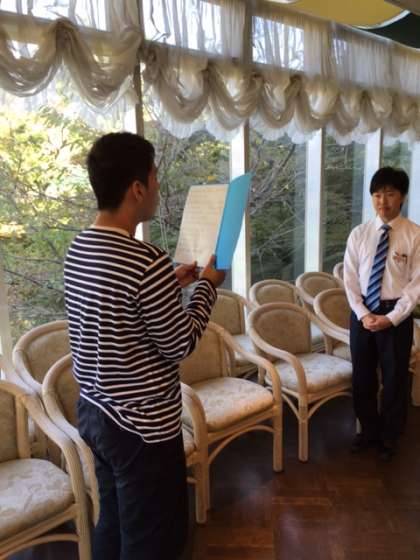 退所式でホテルの方にお礼を言って、出発です。