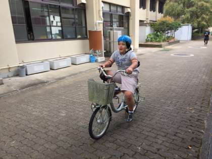 先日までは,玉なし自転車に数mしか乗れなかった人も,一人でペダルをこいで乗れなかった人も,フラフラしながらも数十m乗れるようになりました。