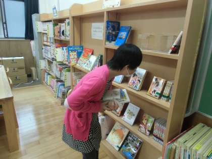 お昼の開館時には,子どもたちは目を輝かせて本を選んでいました。興味のある本を見つけて嬉しそうに手にとって,読んだり借りたりしていました。