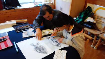 水墨画は先生の御指導のもと,回を重ねるごとに上手に描けるようになってきました。