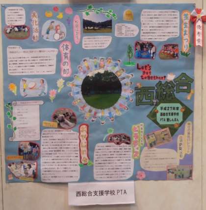 PTA壁新聞コンテストでは,PTA広報委員の方が熱心に作られた西総合支援学校の壁新聞が「優秀賞」を受賞しました。「芝生まつり」「おやじの会」等,たくさんの内容が紙面を飾っていました。後日,事務室前に掲示されますので,ご来校の際には是非ご覧ください。