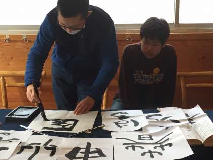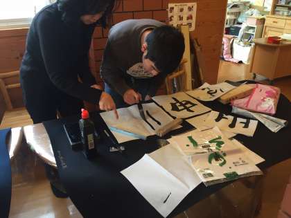 書道では,みんな思い思いの文字を書きました。筆さばきも上達しています。