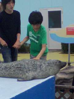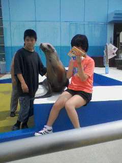 イルカやアシカにタッチしたり,一緒に写真を撮りました。