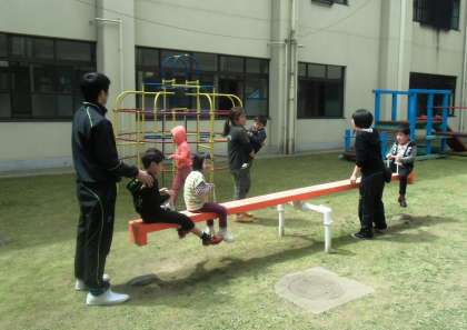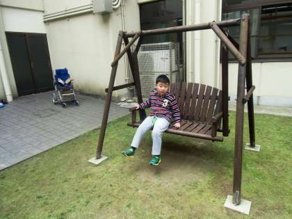 穏やかな天候で,とても気持ちよく中庭の遊具で遊んでいます!