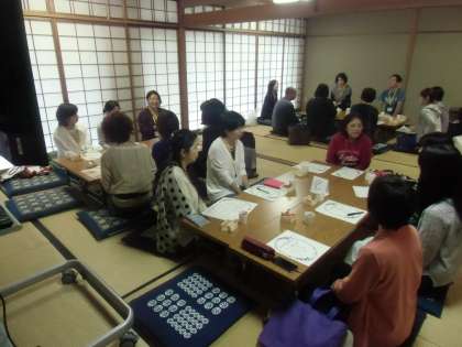 3つのグループに分かれての茶話会では,日常的な子育ての困りや役に立つ情報など,さまざまな話題に花が咲き,大いに盛り上がりました。