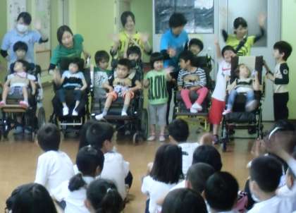 ボールおくり,電車ごっこ,手遊び歌,光遊び,2人組リレー,バルーン等,学年ごとに,ふれあい,楽しみました!!