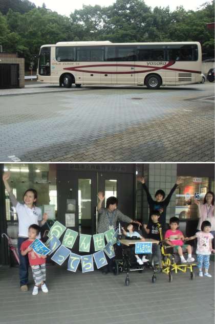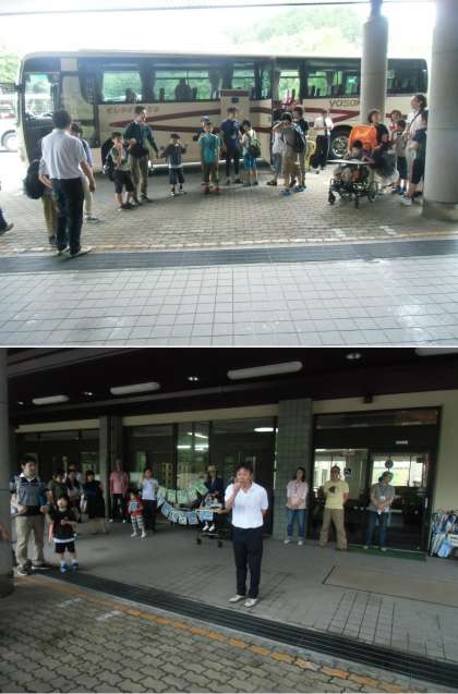 出発式をして,全員そろって,観光バスで学校を出発しました。