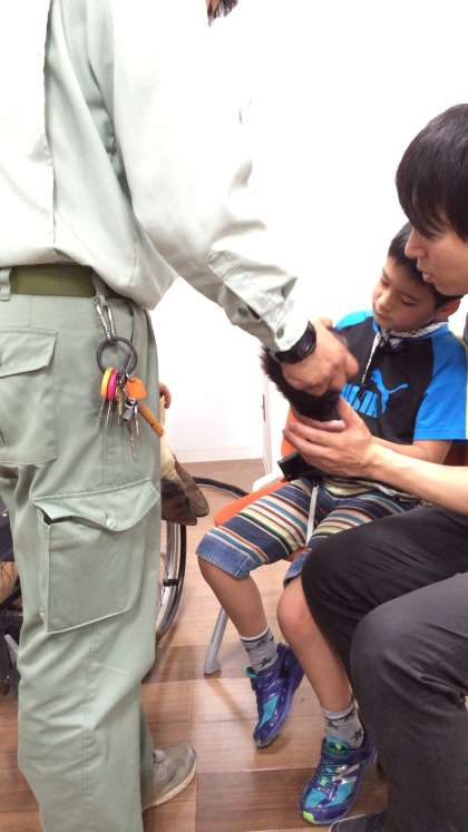 レクチャールームで係りの方から説明を聞きます。毛皮を触ったり、いろいろな動物の声を聞いたり‼️楽しいね。
