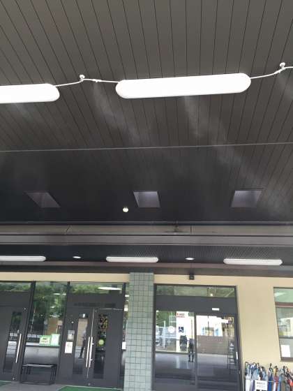 京都市上下水道局では,水道水の環境にやさしい特性をPRし,新たな利用方法を広く紹介するため,熱中症対策や地球温暖化防止などに効果のあるミスト装置の普及促進に取り組んでおられます。昨年度,本校にもモニターとして簡易ミスト装置を配分していただきました。