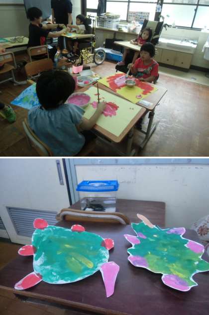 (作品が出来上がって,色塗りをして遊んでいる子どももいました)
