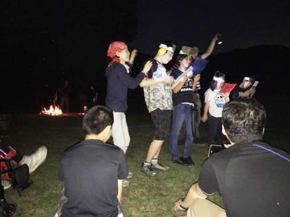 勢いよく燃え盛る火を見ながら、「燃えろよ燃えろ」「キャンプだホイ」を歌ったり、ユニットごとに出し物をしたりして盛り上がりました。