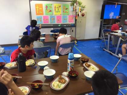 中学部1年生は,みんなで,から揚げ・ポテトサラダ・おにぎりを作り,美味しくいただきました。