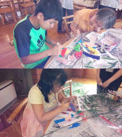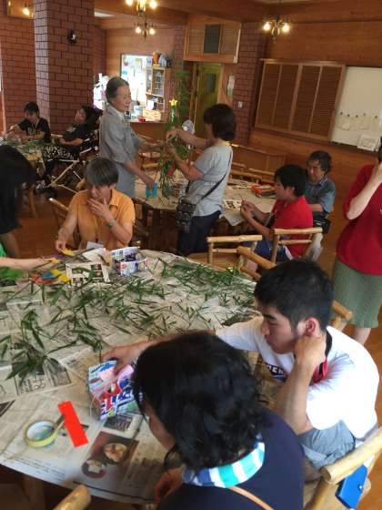 ちょうど七夕の日、立派な笹を用意していただき、はりきって工作開始。