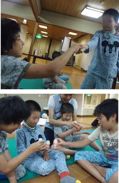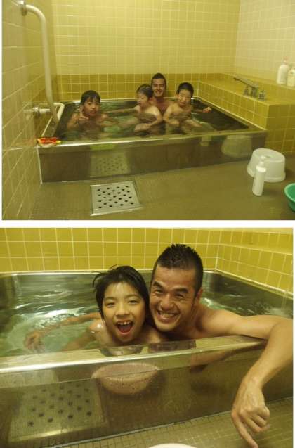 みんなでお風呂、そして友達からのおもてなしヤクルトで乾杯!