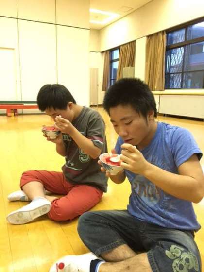 みんなの力でスイカを割ることができました。割った後のお楽しみです。