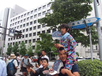 祇園祭うちわ配りに小学部6年生の6名が参加しました。