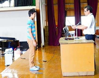 全校集会では,パワーポイントの映像とともに,校長先生から「この4ヶ月を振り返ってみましょう。入学式,体育の部,小学部修学旅行,ロイヤルバレエ団来校など,色々なことがありましたね。行事だけでなく日常の学校生活でも,がんばっている人をみつけました。掃除,授業準備,昼休みの読書・美術,水やりなど,自主的に頑張っている人がたくさんいました。すばらしいですね。明日からの夏休み,長い休みを利用して頑張ることを決めて実行してください。また,交通事故,水の事故などに十分気をつけて,楽しい夏休みを過ごしてください。」とお話がありました。みんな,集中して見聞きしていました。