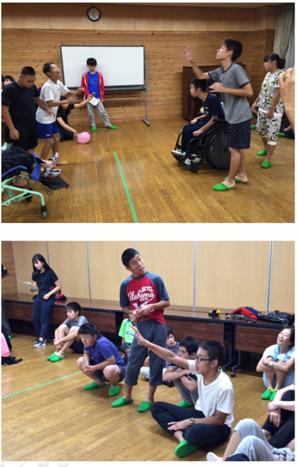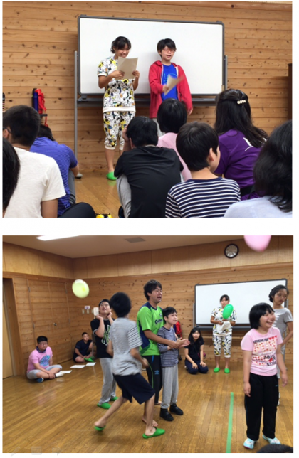 夜の集いでは,レクレーション係りを中心に,歌を歌ったり,クラス対抗風船バレーをしたり,ジェスチャーゲームをしました。どれも大盛り上がりです。