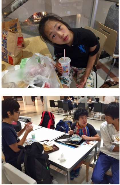 イオンKYOTOのフードコートでの昼食です。マクドナルド,ラーメン,アイス,天ぷらうどん,焼きそば定食,カレーライス・・・ 予算900円で好きなものを食べています。