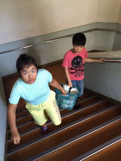 トイレにトイレットペーパーを運んでいるユニットや,芝生まつりのポスターの台紙を作っているユニットです。