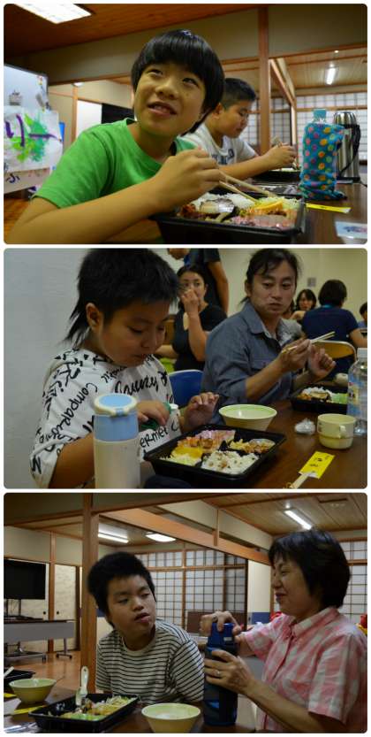 夕食のお弁当が届くまでの時間,生活学習室で少し休憩をしています。