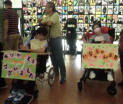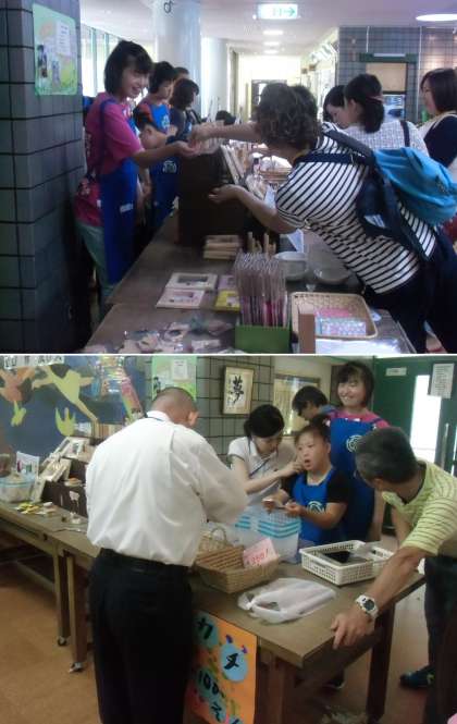 午前中にワーク製品の販売を行いました。「ハンカチどうですか。」「ありがとうございました。」と元気よく呼びかけ,応対していました!!