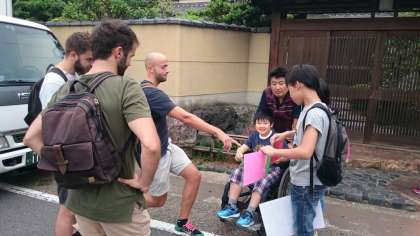 お土産のしおりを渡すと,にっこりして受け取ってもらえました。