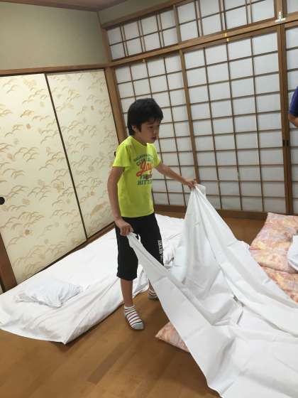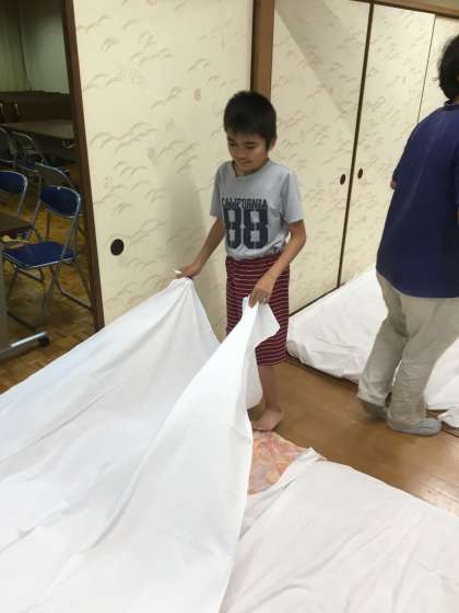 楽しいレクリエーションが終わり,いよいよ消灯です。寝る準備も自分たちで頑張りました。