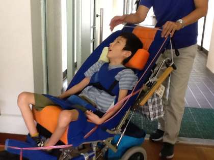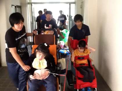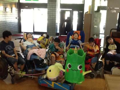 高等部の自立活動ユニットでは,東北三大祭と言われている青森の「ねぶた祭り」のイメージで,たけにょんやまゆまろを山車に見たて,校内をねり歩きました。