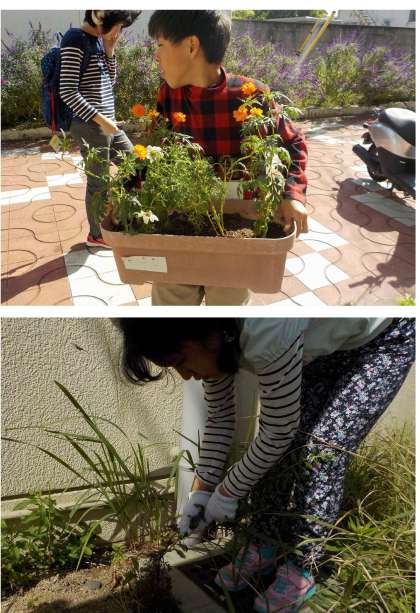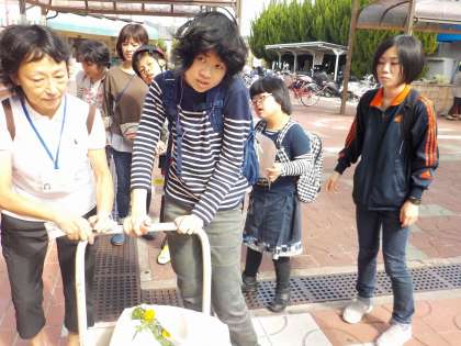中学部の居住地域「洛西」ユニットで、新林郵便局にお花を届けに行きました。局長さんに挨拶をし、お花を渡して、プランターを置くところの草ぬきをしました。通りがかりの地域の人が、挨拶をしてくれたり、褒めてくれたりしました。