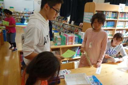 昨日は本の貸し出し日ということもあり、たくさんの児童生徒が図書館に来てくれました。