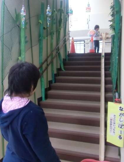 中学部1年展示「T.T.M. Revolution 〜 竹取物語 2016 〜 絵巻」(東校舎2F教室前廊下,階段)には,素敵な竹林が広がり,「ボールながし(竹の樋にボールを転がします)」もできます。また,竹林の入り口には写真コーナーがあり,「パッカーン」と竹から生まれた写真も撮れます。この竹は車いすの上からかぶれます。みなさん,楽しんでください!!