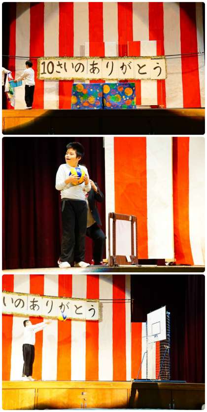 ぼくたち,わたしたちは,今年で10才になります。20才の成人式の半分です。生まれて10年,みなさんに感謝の気持ちを込めての発表です。みんな,成長した姿をしっかりと見せてくれました。