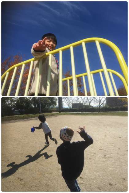 滑り台やブランコで遊んだり,みんなで追いかけっこをしたりして遊びました。お天気も良く,ポカポカ陽気の中で笑顔いっぱいのお出掛けになりました。