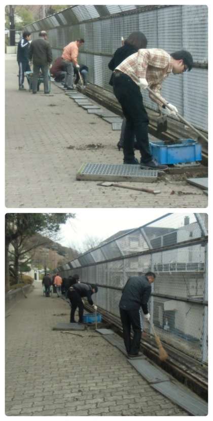 12日(月),オムロンの社員の方々が36名,本校に来校され,第2回社会奉仕活動として,清掃作業を行ってくださいました。