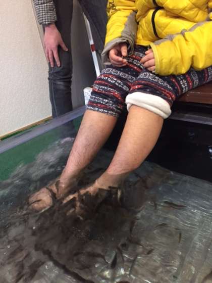 Aグループは、足を綺麗にするグループ。ドクターフィッシュ体験をして、お魚さんたちに足を綺麗にしてもらいました!今からホテルに向かいます!