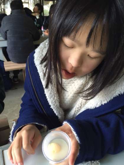 学校で練習した成果を発揮して、みんなバターを完成させることができました。乳搾りは、本物の迫力にびっくりしながらも体験することができました!