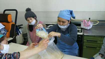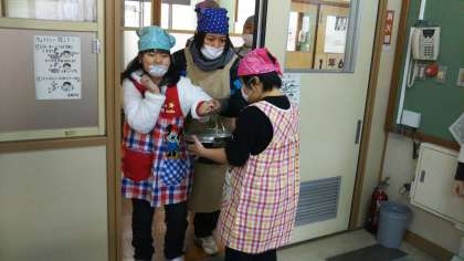 鍋担当の友だちに上手に手渡し届けることができていました☆