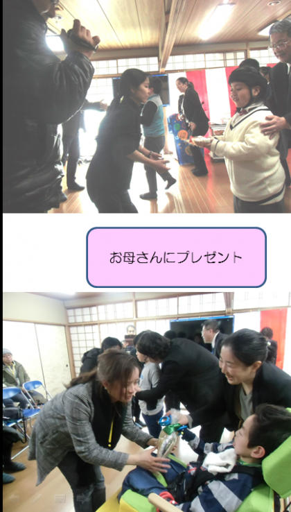 みんなで「10才のありがとう」という歌を歌い,用意してきたプレゼントを保護者の方に渡して,なごやかに式を締めくくりました。