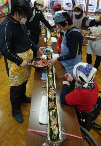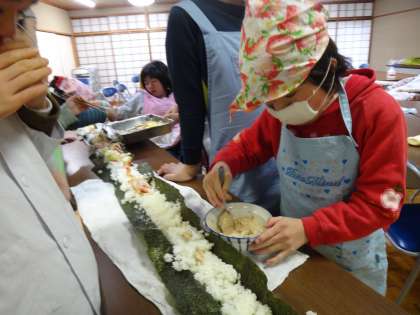 中学部1年 長〜い海苔巻に挑戦!  (1)
