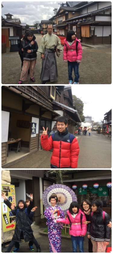 Bグループは,昔の街並みでお侍さんや町娘に出会いました。