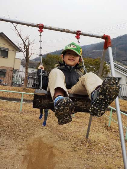 体を動かしていっぱい遊びました。滑り台の順番を守ったり,友だちとブランコを交代したりできる素敵な1年生です。