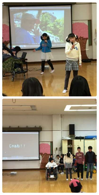 オンステージで3年生の卒業を盛り上げた後,1,2年生や学部ワークから卒業のお祝いがありました。その後,一緒に踊ることが最後になる,水泳学習の時に踊っていたダンスをみんなで踊りました。最後は1,2年生で花道を作り,もうすぐ卒業していく3年生を見送りました。