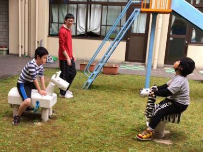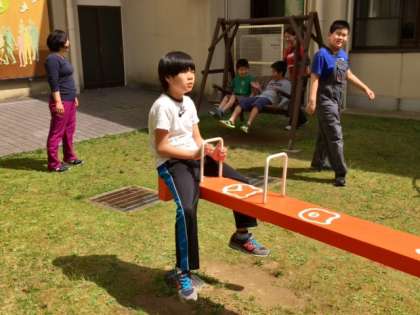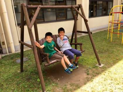 先週の金曜日に管理用務員さんが綺麗に塗りなおしてくださった木馬(?)に乗ったり,おやじの会で製作していただいたベンチ型ブランコ,シーソーなどで遊んでいました。
