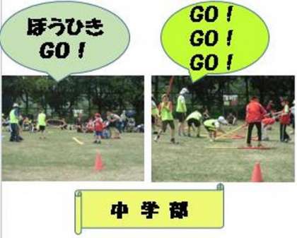 今回は,開会式から団体演技までの練習を行った後,各学部の種目の練習をしました。テントからは,競技をしていない学部の声援が聞こえていました。