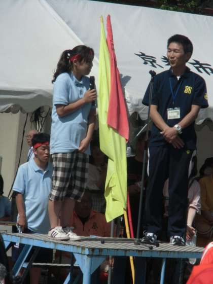 黄組,赤組の代表が,それぞれ,優勝トロフィー,準優勝トロフィーをいただきました。