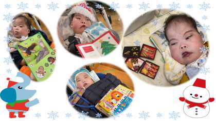 訪問児童生徒同士で「オンラインウィンターパーティー」をしたり、「にこにこおたのしみ会」にスクーリングで参加したりしました。友だちの映る画面をじっと見つめたり、声をかけられるとにこやかな表情になりました。