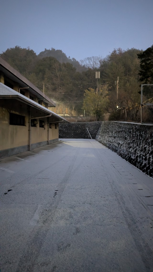 学校周辺はうっすらと積雪しております。自主通学・部分通学生の皆さん、スクールバス停や学校送迎等の保護者の皆さまも、足元に気をつけて登校してください。