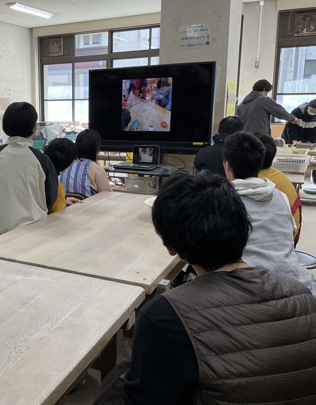 高等部のワークスタディ陶工の生徒たちが、北・呉竹総合支援学校の陶工の生徒とオンライン交流を行いました。
