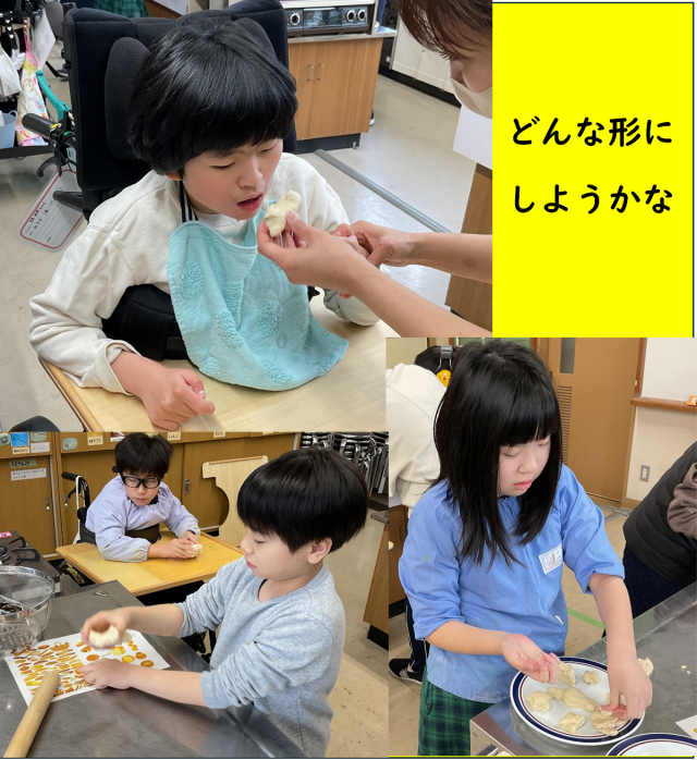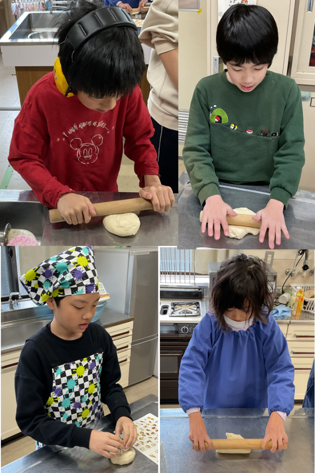 子どもたちは、生地を綿棒や自分の手で丁寧に伸ばしながら、形づくりを楽しんでいました。